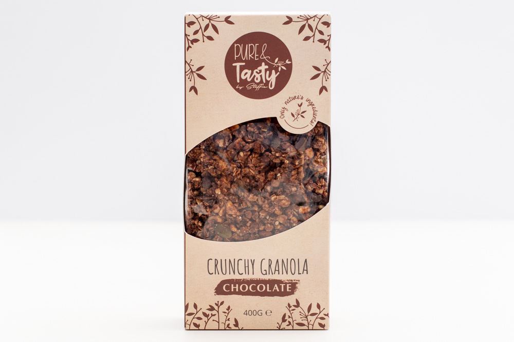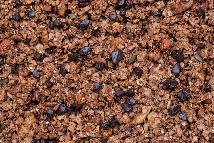 Heerlijke crunchy granola boordevol essentiële voedingsstoffen. En chocoladestukjes! Need I say more?