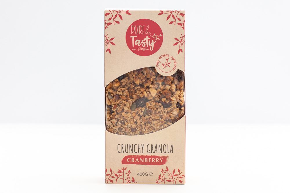 Heerlijke crunchy granola boordevol essentiële voedingsstoffen. En cranberries! Rijk aan vitamine C en gekend voor hun positief effect op ons urinestelsel. De cranberries die we gebruiken, zijn geconserveerd met appeldiksap. 100% puur natuur, zonder suiker of sulfiet.